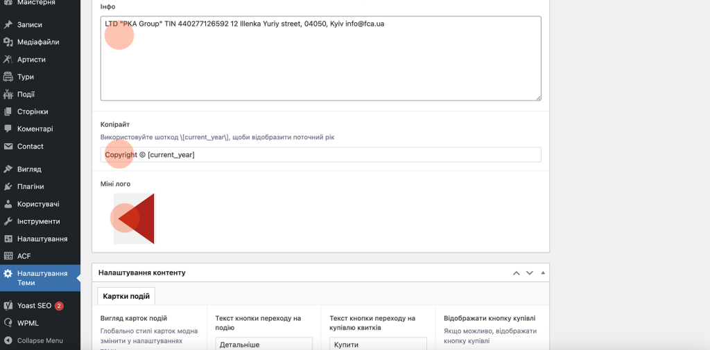 4. Редагування тексту про авторські права у футері