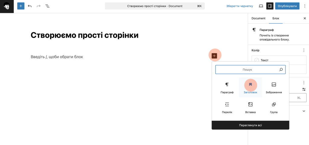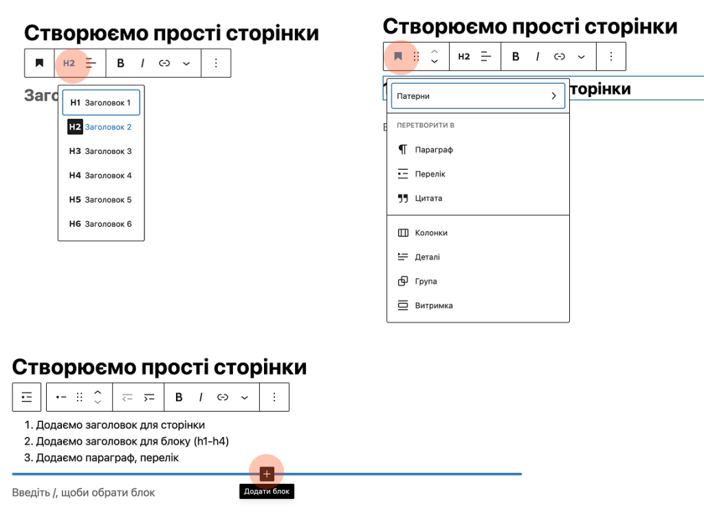 4. Тицяємо інтерфейс (трансформація текстових блоків, додавання нового блоку між існуючими)