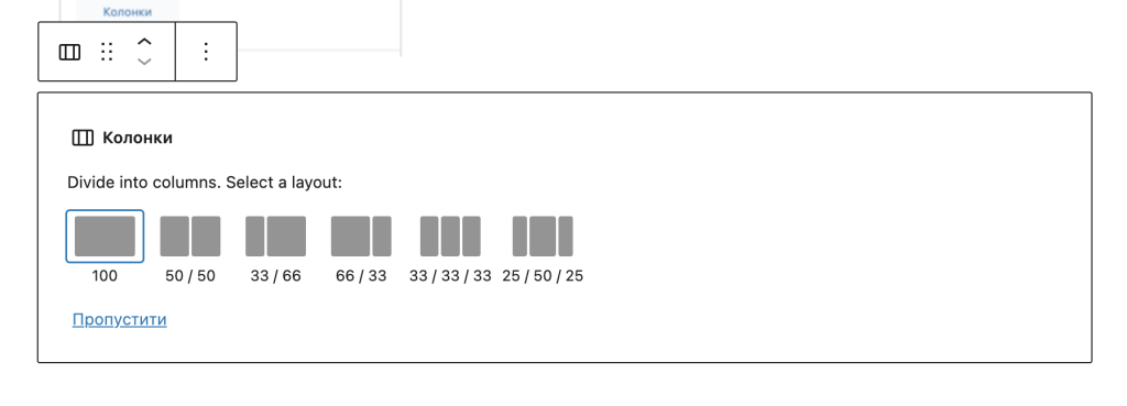 2. Обираємо пропорції колонок. P.S. колонки також можна вкладати всередину інших колонок, наприклад, щоб отримати 4 колонки